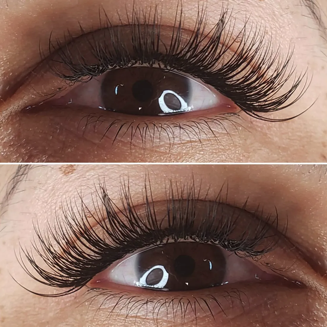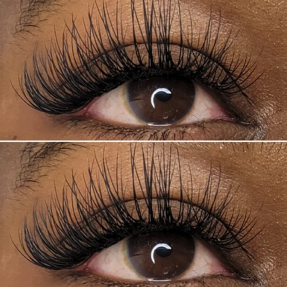 Volume lashing is a technique used to achieve a fuller, fluffier look. With this method, anywhere between 2-8 ultra-fine extensions are fanned out and applied to a single natural lash